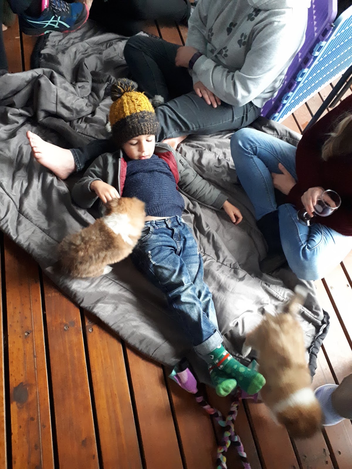 At each litter (at about 7 weeks) I invite a pile of friends over to handle puppies and let them get used to different people and crowds and (nice) children. We did this last night and it was a huge success!